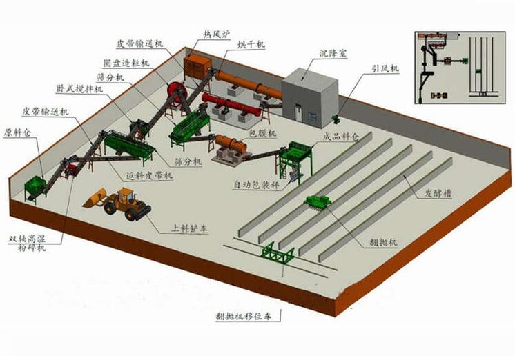 在本生產(chǎn)線里我配備的粉碎機(jī)是半濕物料粉碎機(jī)主要用于水分在25—30%的雞糞,牛糞,豬糞,羊糞,以及其他物有機(jī)物料的粉碎效果極佳,設(shè)備配置里邊造粒機(jī)我?guī)湍渲昧诵滦陀袡C(jī)肥造粒機(jī),主要適用于畜禽糞便、酒糟、藥渣、沼渣、木粉等含有纖維素的有機(jī)物料,可以直接造粒,成球率高,顆粒強(qiáng)度好,節(jié)省烘干成本,生產(chǎn)過(guò)程中主機(jī)不需要專人操作。將發(fā)酵后的物料進(jìn)入粉碎機(jī)打成粉狀后;將物料輸送至攪拌機(jī)均勻攪拌;攪拌均勻后通過(guò)輸送機(jī)進(jìn)入造粒機(jī)造粒,造出來(lái)的顆粒因?yàn)樗直容^大需要進(jìn)入烘干機(jī)去除水分;顆粒從烘干機(jī)出來(lái)以后溫度高,由于烘干產(chǎn)生的冷凝水附著在顆粒表層,不易包裝,容易結(jié)塊,所以要經(jīng)過(guò)冷卻機(jī)利用加快空氣回流的原理使顆粒表層溫度降低,將冷凝水變成蒸汽揮發(fā),這一道工藝可以大大促進(jìn)肥料的保存效果,增長(zhǎng)保存周期;冷卻之后的顆粒還存在大小不一的情況,要經(jīng)過(guò)篩選機(jī),把不符合標(biāo)準(zhǔn)的要經(jīng)過(guò)篩選機(jī)廢料出口粉碎之后重新進(jìn)入造粒機(jī)再次造粒,符合標(biāo)準(zhǔn)的顆粒就可以直接打包銷售了。